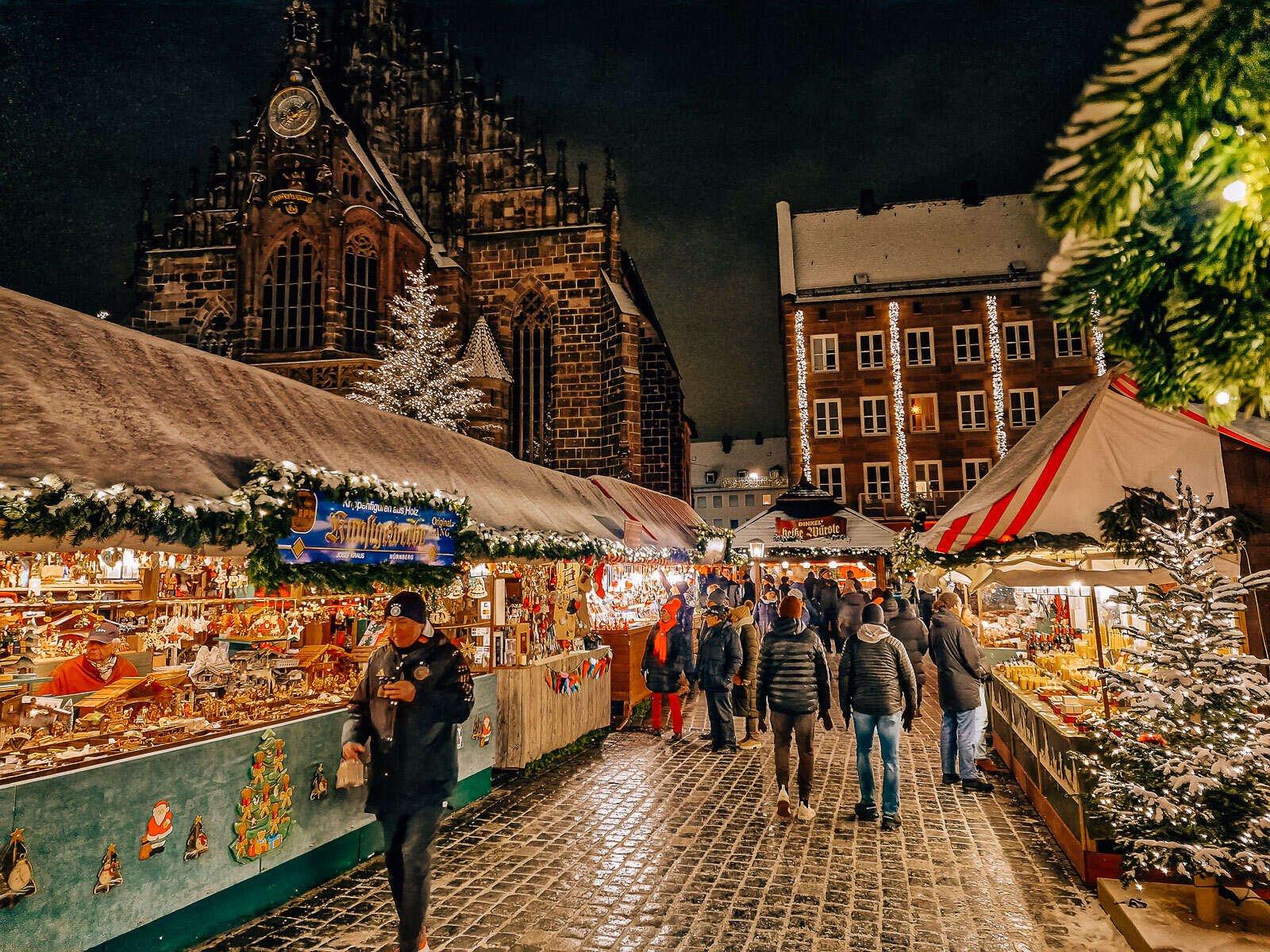Il Christkindlesmarkt è il mercatino di Natale più famoso di Norimberga, situato nella Hauptmarkt. Qui puoi trovare splendidi alberi addobbati e bancarelle di artigianato locale. Prova il pan di zenzero e le salsicce di Norimberga. Nelle vicinanze ci sono anche il Municipio e ristoranti come il ristorante Alte Küch'n, perfetti per una pausa. Inoltre, l'hotel Hotel Eloquence si trova a pochi passi.